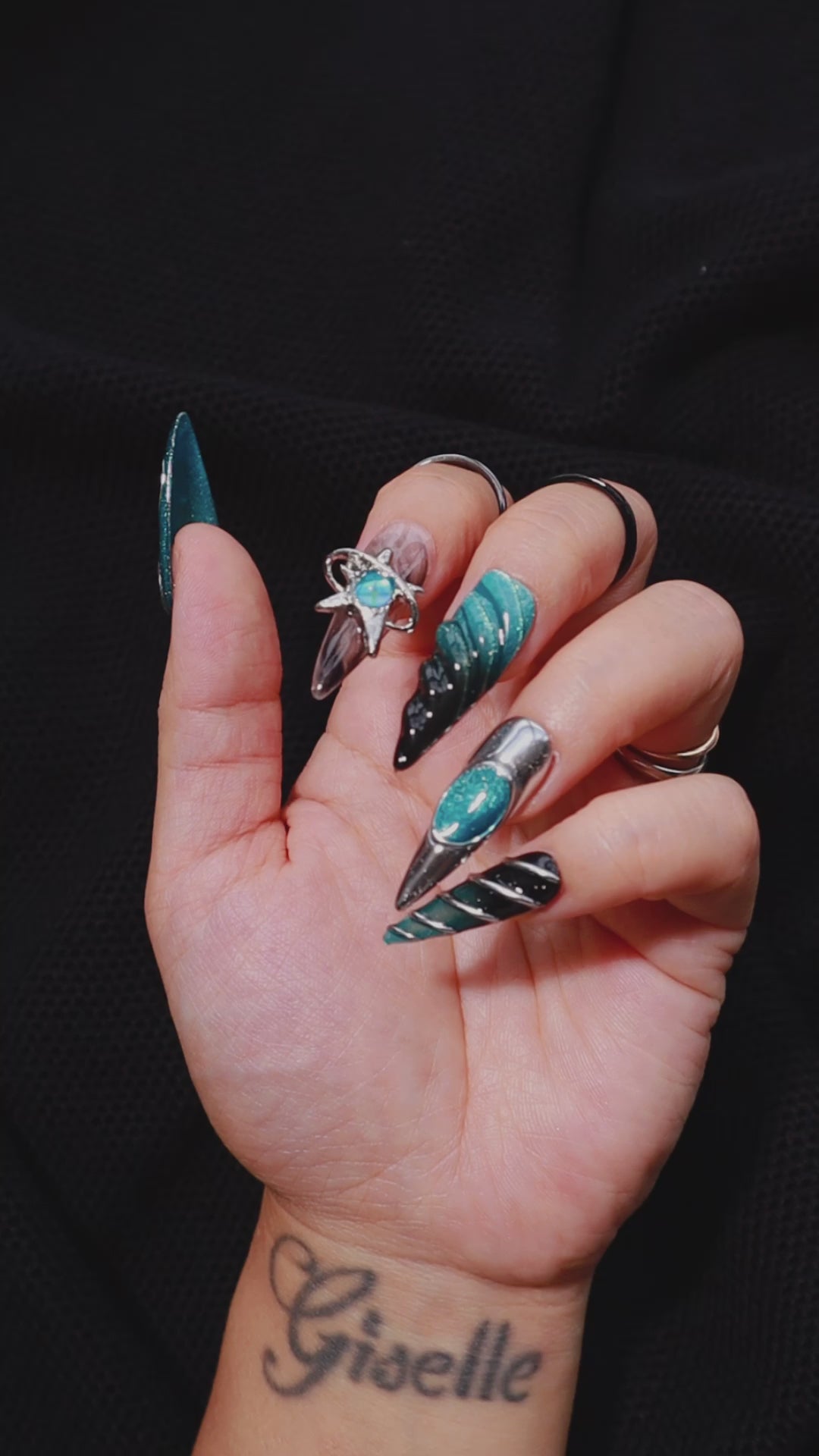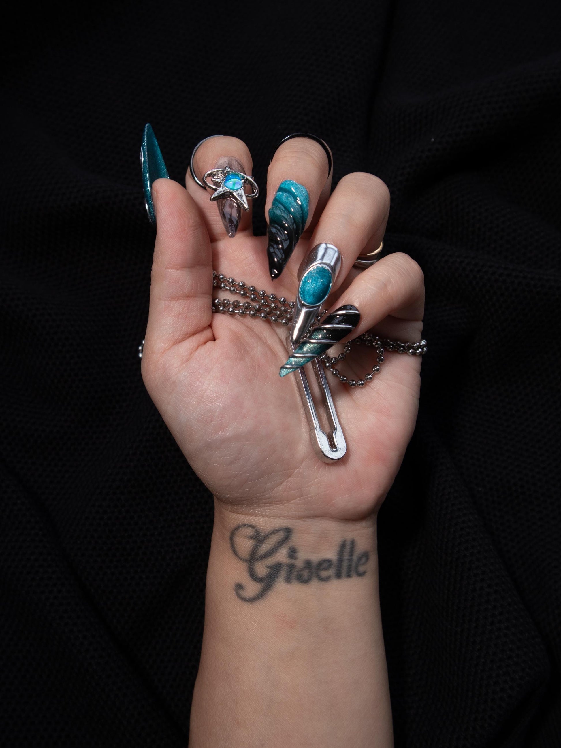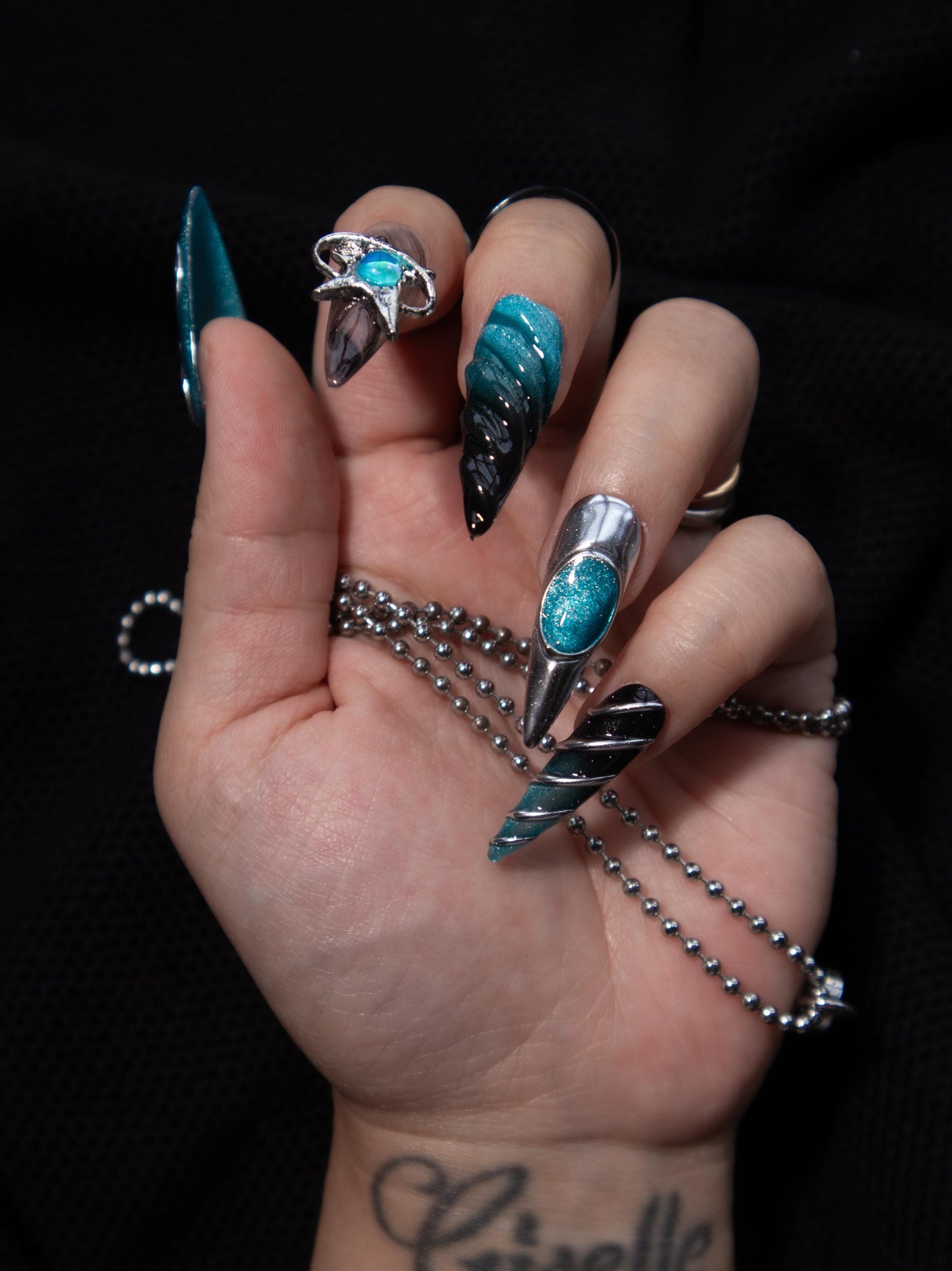 Go interdimensional with this Between Worlds press on nail set featuring a blue black gradient base, silver chrome details, and 3D effects. Made with premium gel, they’re durable, reusable, and designed to feel like custom luxury nails without the salon visit.