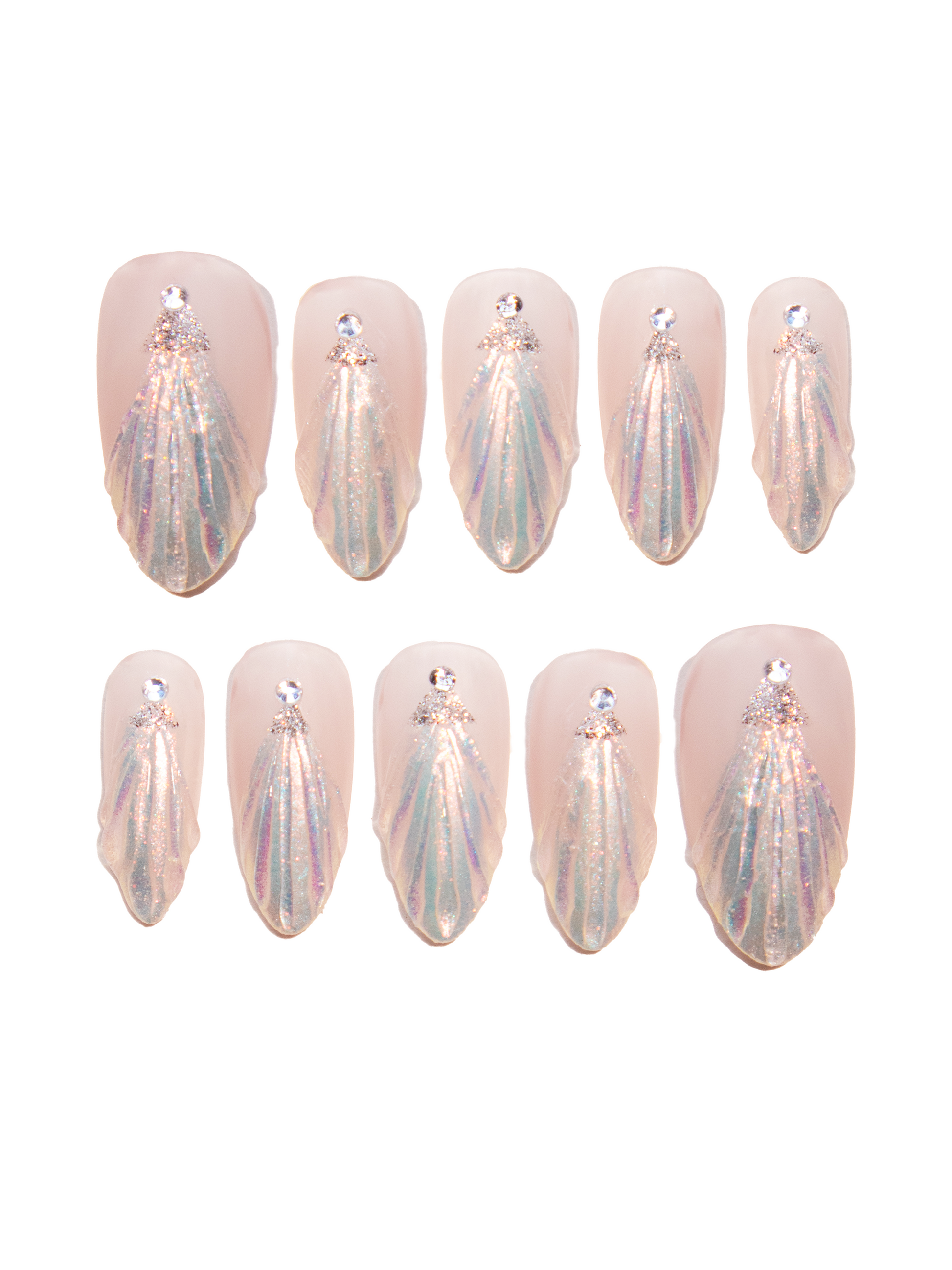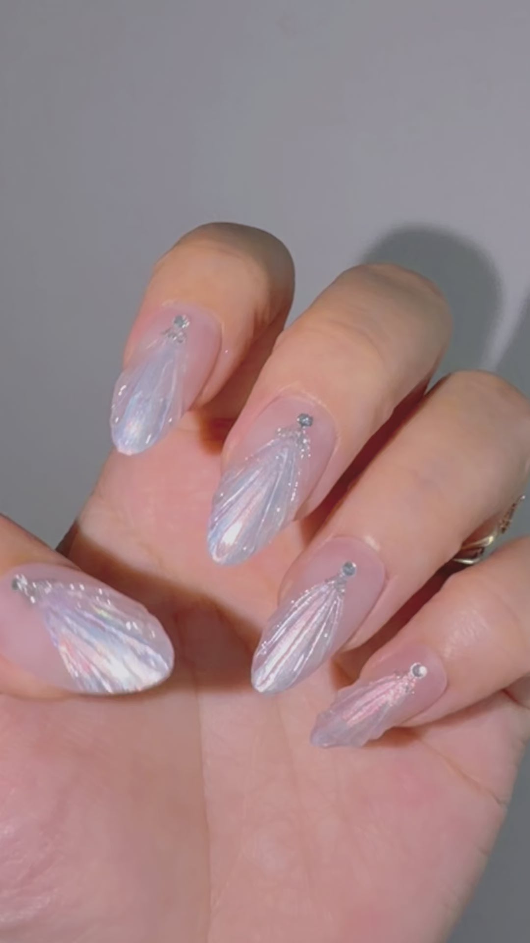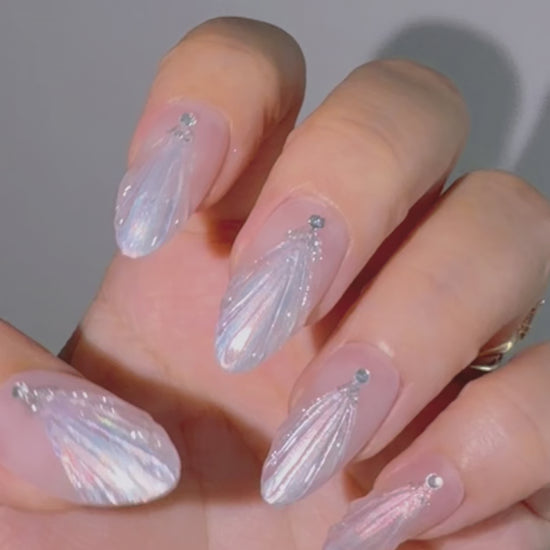 These frosty tips christmas press ons elevate the season with a touch of glam. Iridescent pearl with 3D and crystal details. Made with premium gel, they’re durable, reusable, and designed to feel like custom luxury nails without the salon visit.