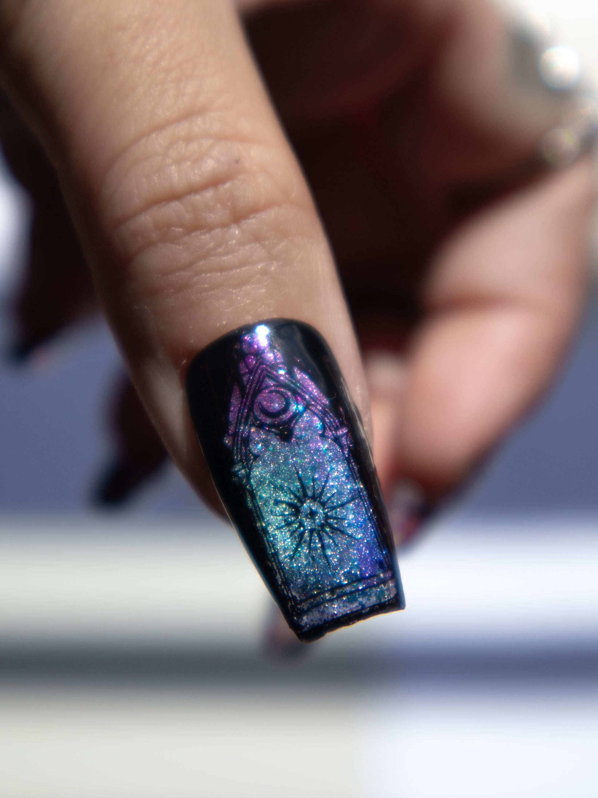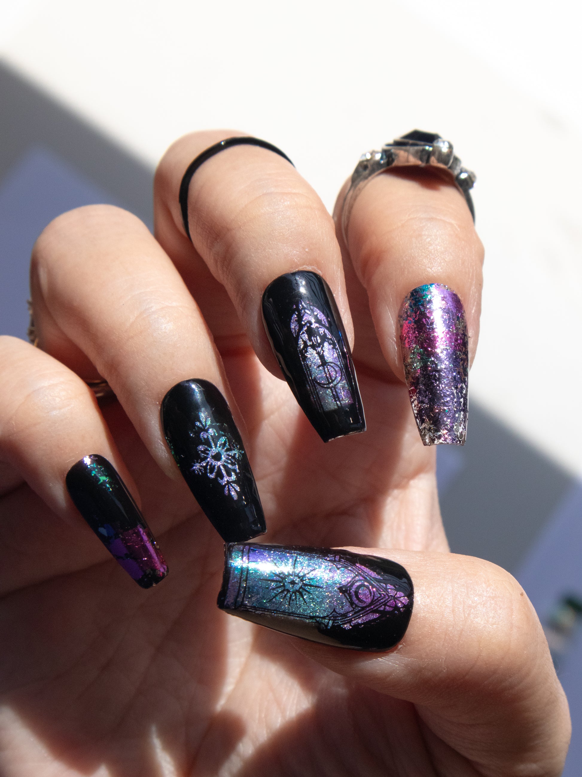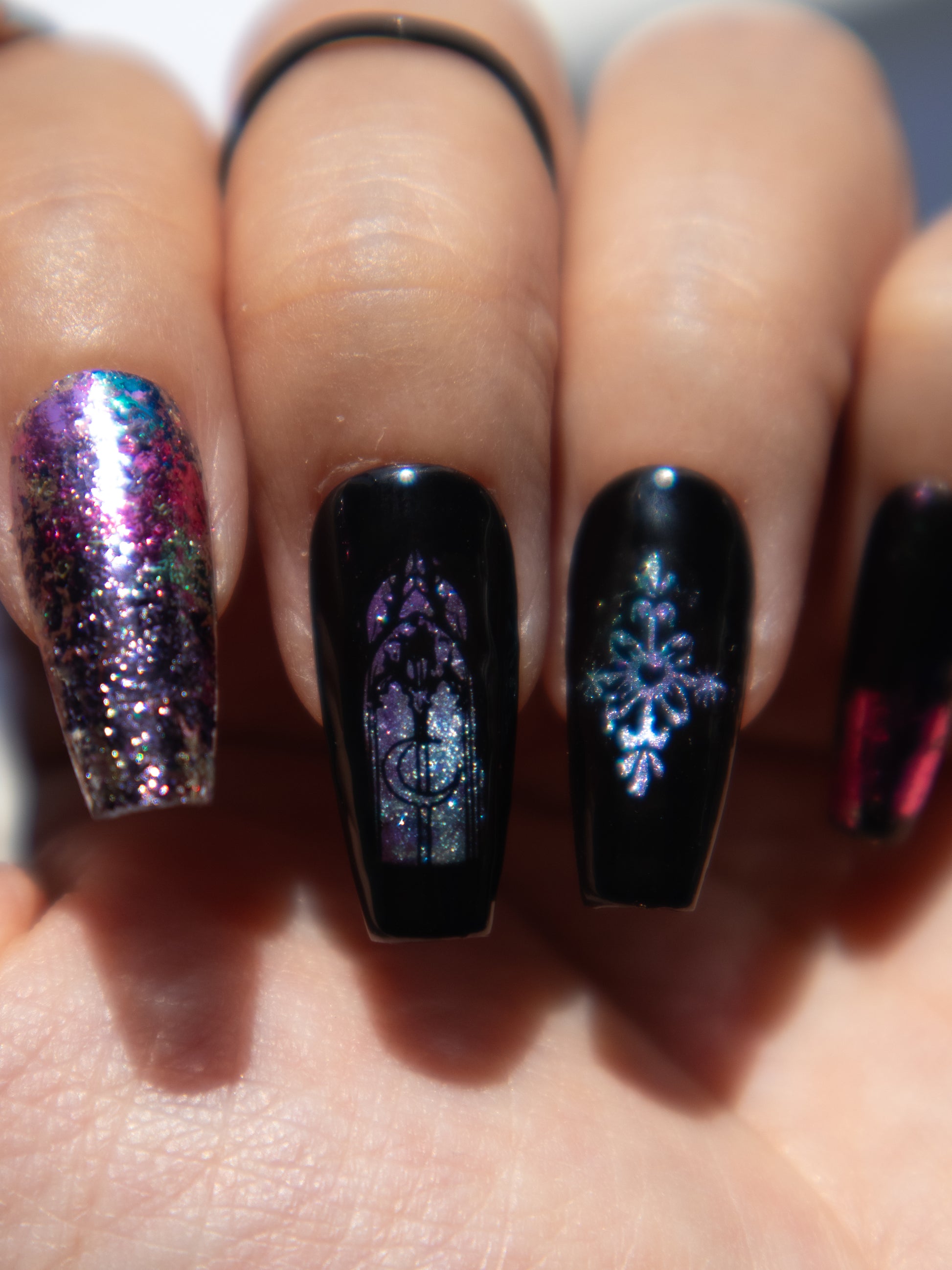 These magical glittery cathedral press ons lift your spirits this season. Perfect if you like your darkness with a bit of sparkle. Made with premium gel, they’re durable, reusable, and designed to feel like custom luxury nails without the salon visit.