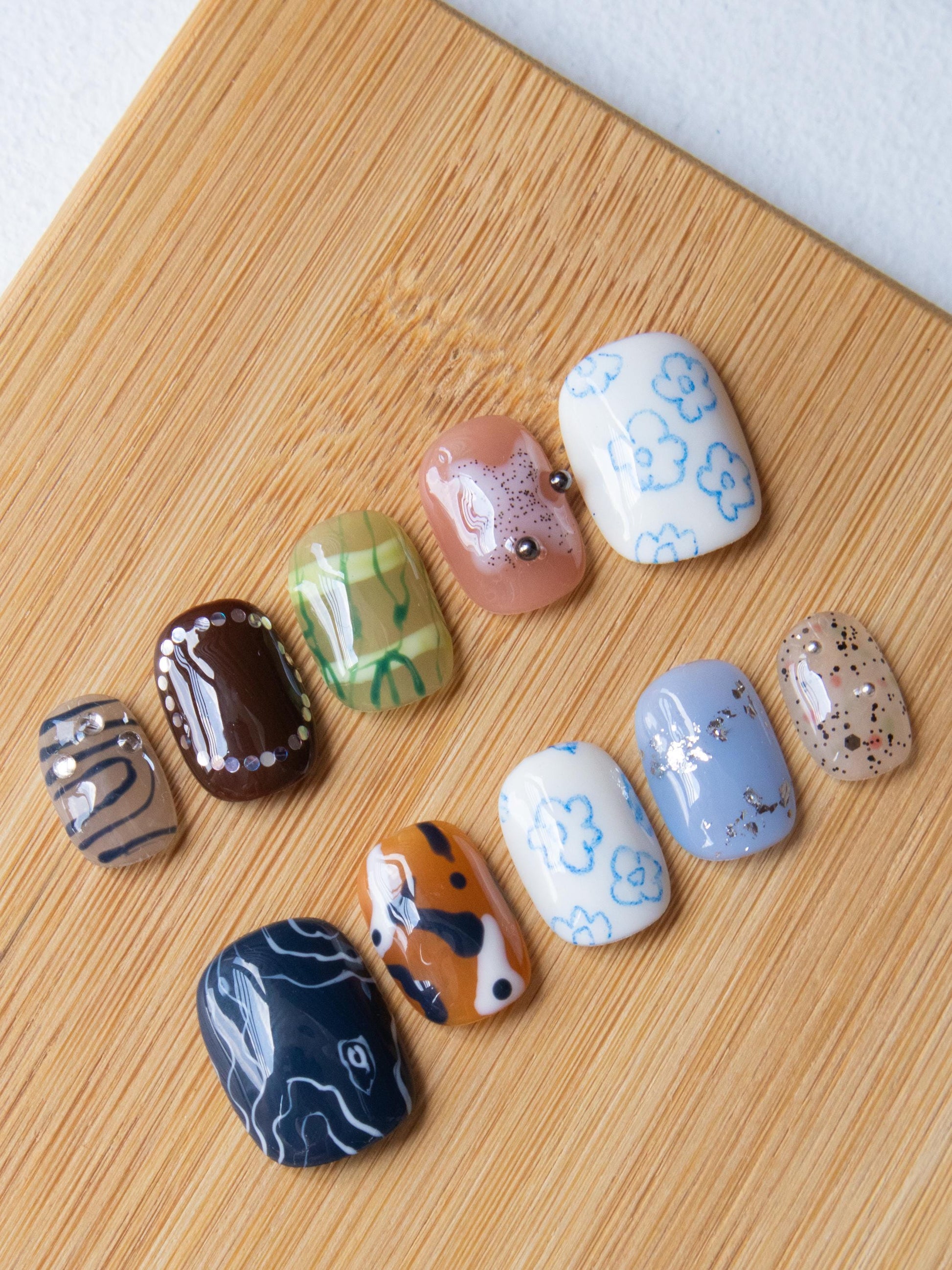 Express your inner child with this Kawaii Doodle press on nail set. Neutral shades adorned with hand-drawn marker effects and scrawls. Made with premium gel, they’re durable, reusable, and designed to feel like custom luxury nails without the salon visit.
