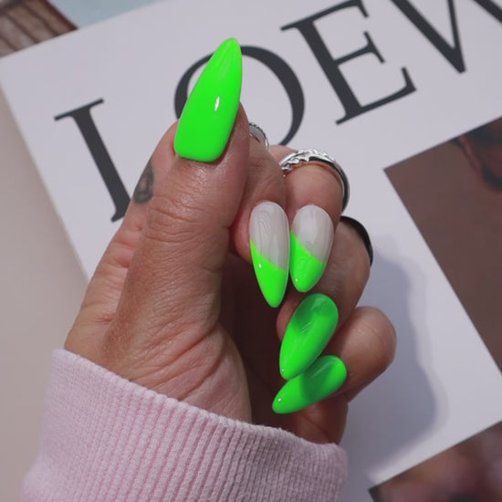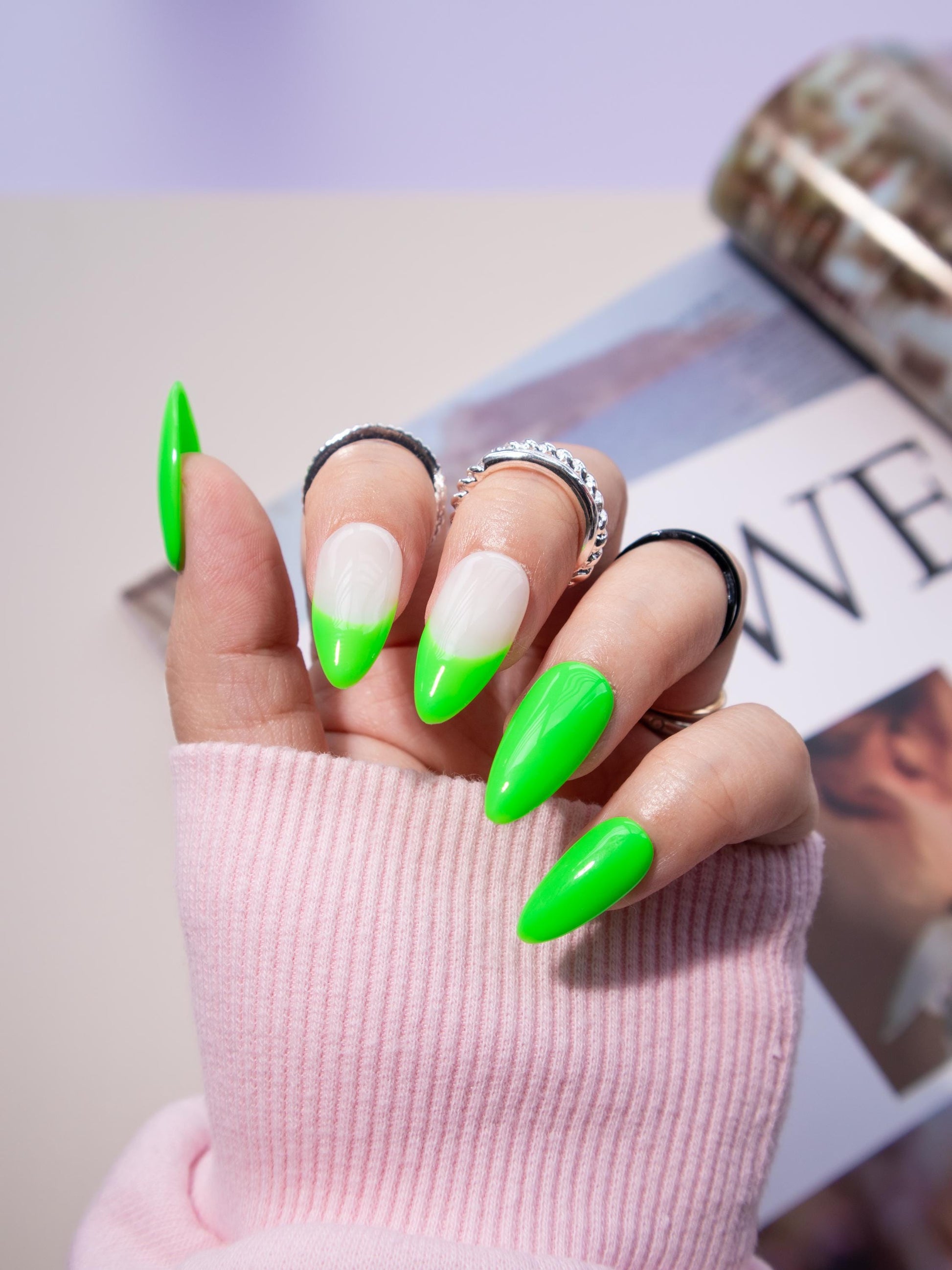 These stunning neon green French tip press ons scream cool girl vibes from the rooftops. Made with premium gel, they’re durable, reusable, and designed to feel like custom luxury nails without the salon visit.