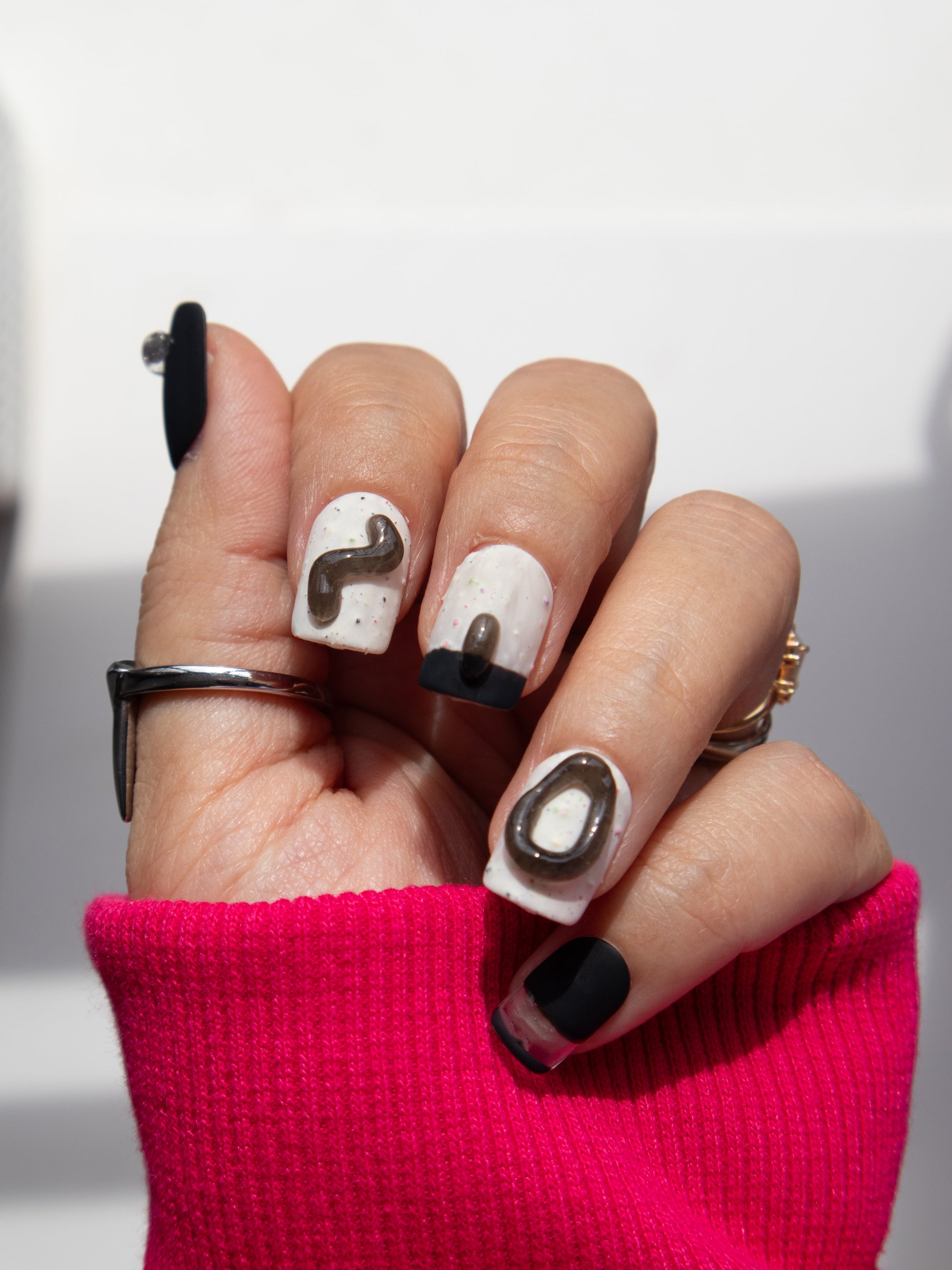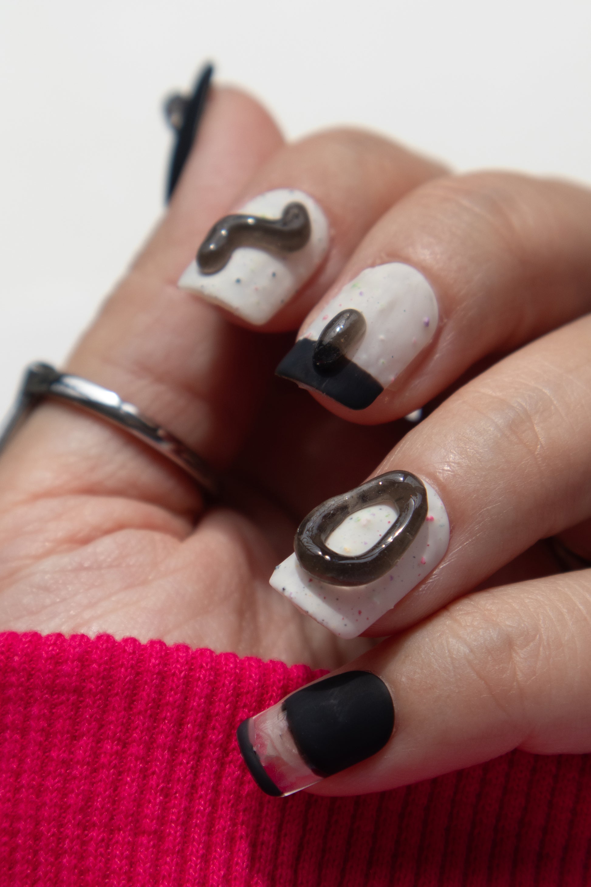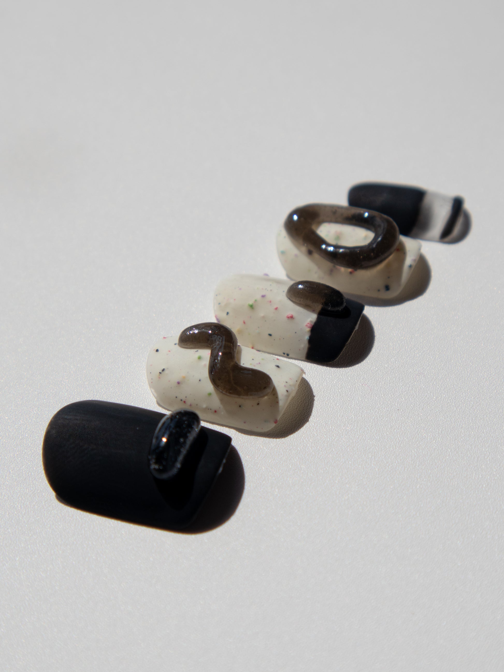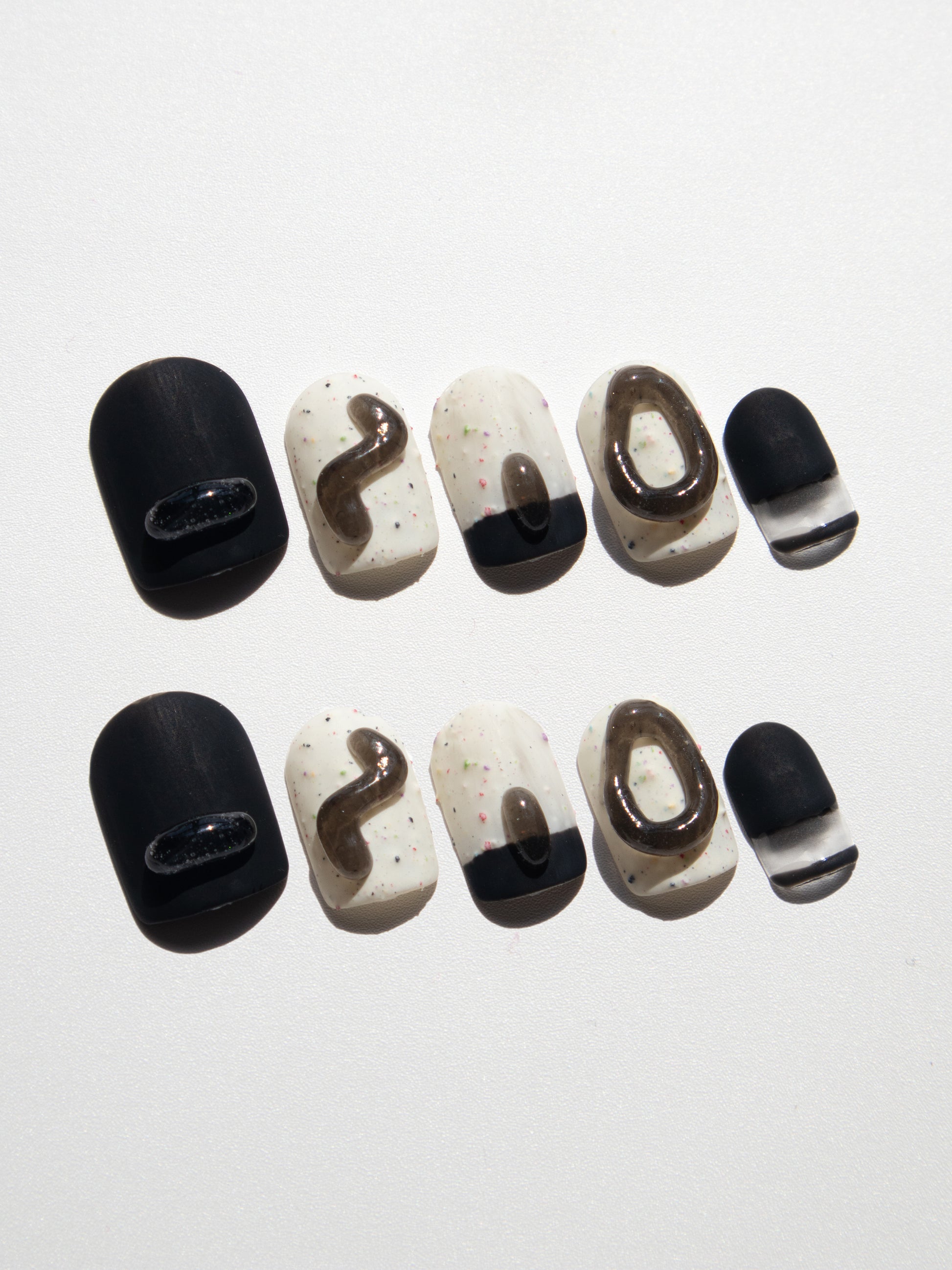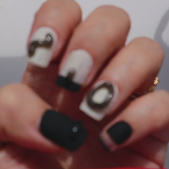 These 3D black jelly press ons whisper an artistic flair to any outfit. Made with premium gel, they’re durable, reusable, and designed to feel like custom luxury nails without the salon visit.