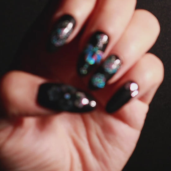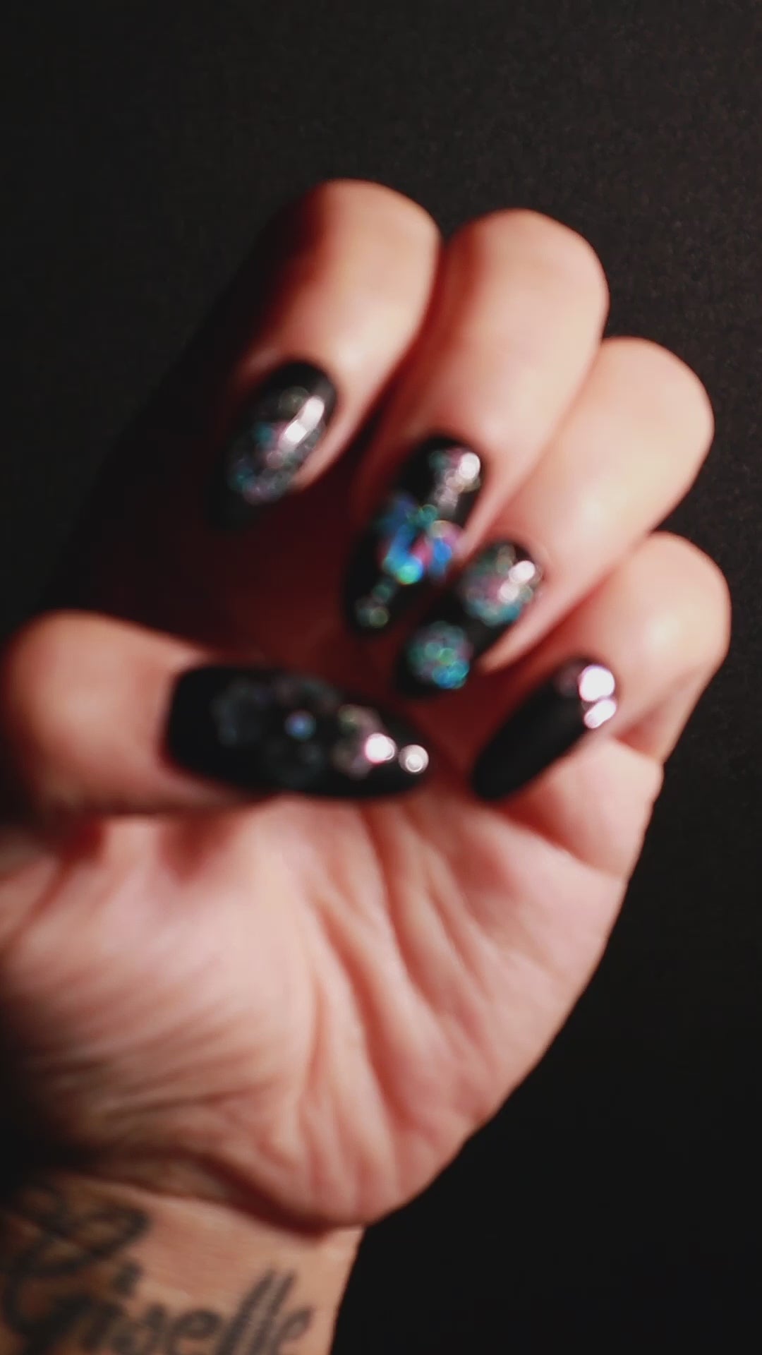 Tribal tattoos in an abalone shell finish. A witchy, gothic statement maker for every occasion.