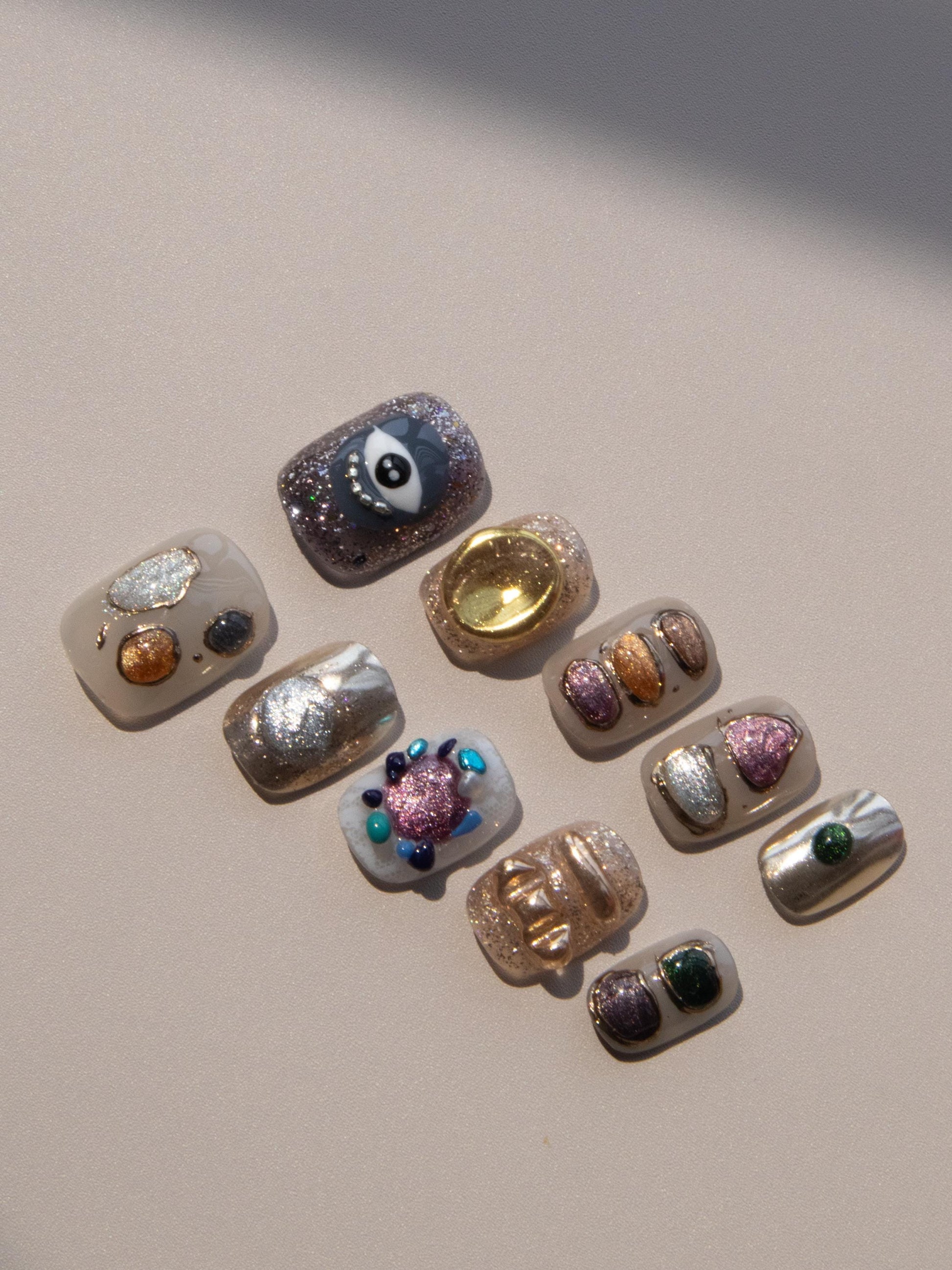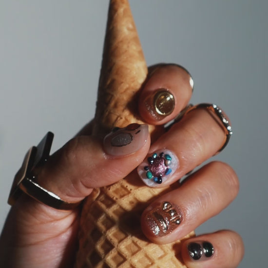 These natural elements press on nails evoke salt-of-the-earth with just the right touch of whimsy randomness. Made with premium gel, they’re durable, reusable, and designed to feel like custom luxury nails without the salon visit.