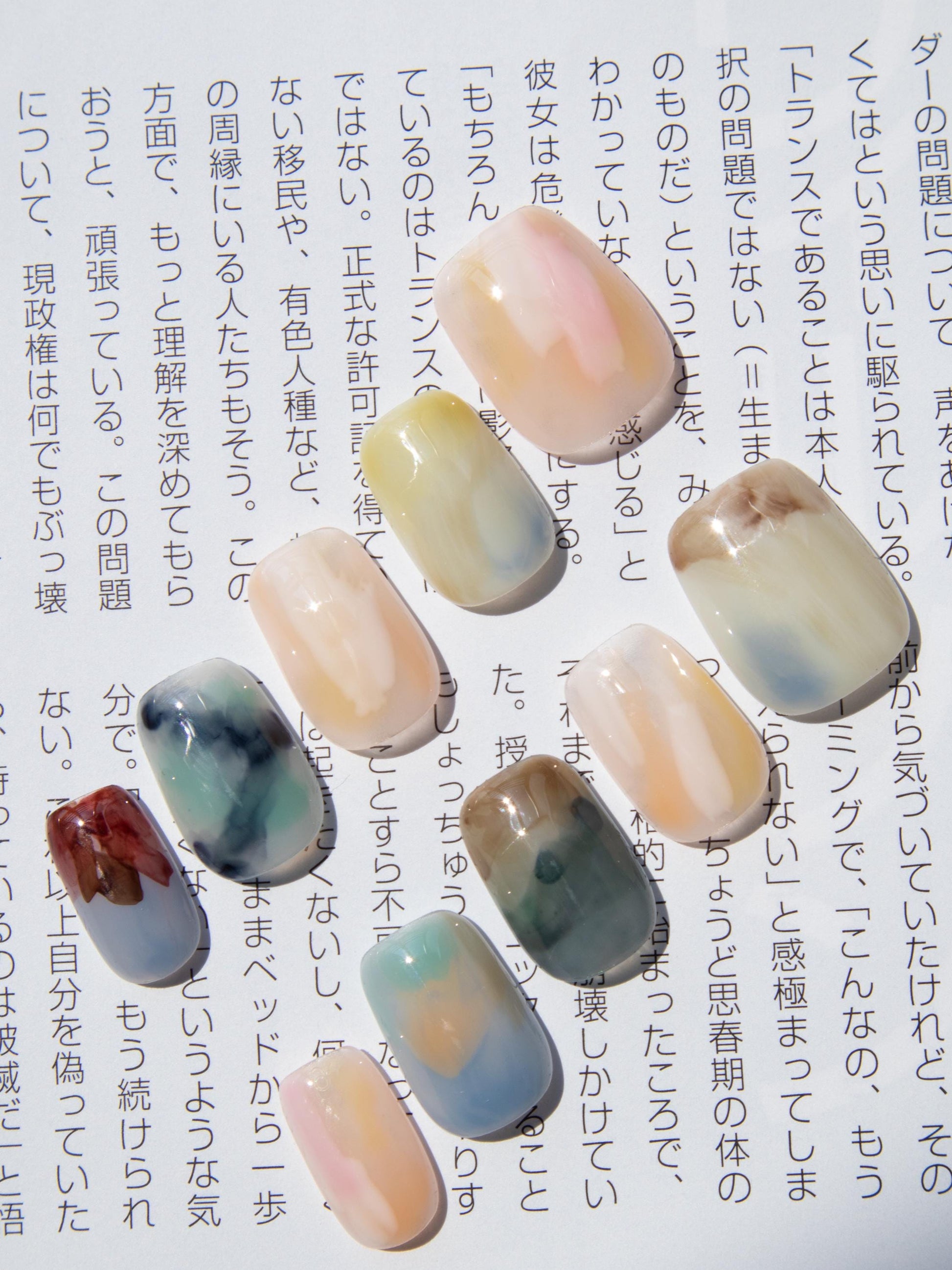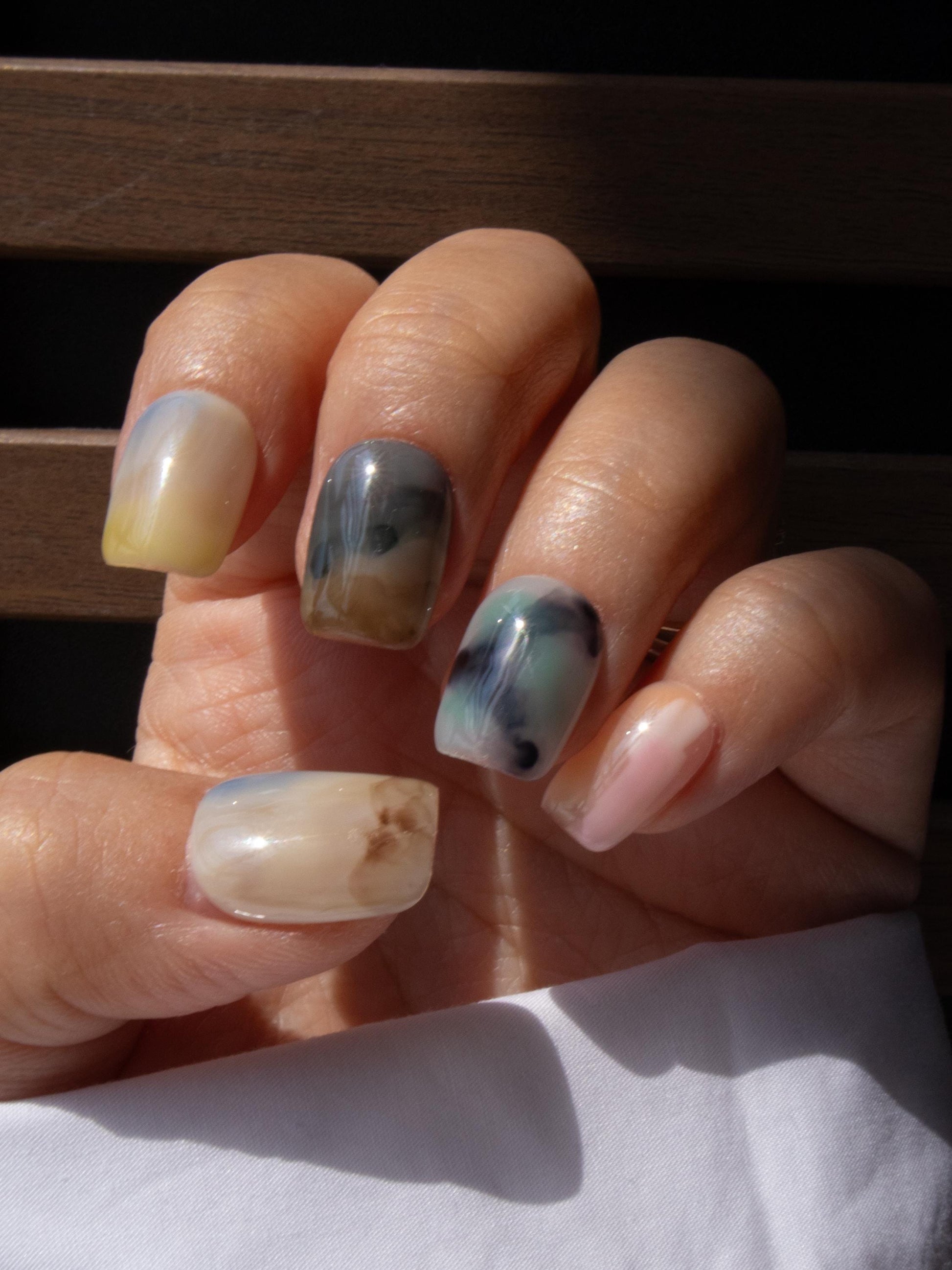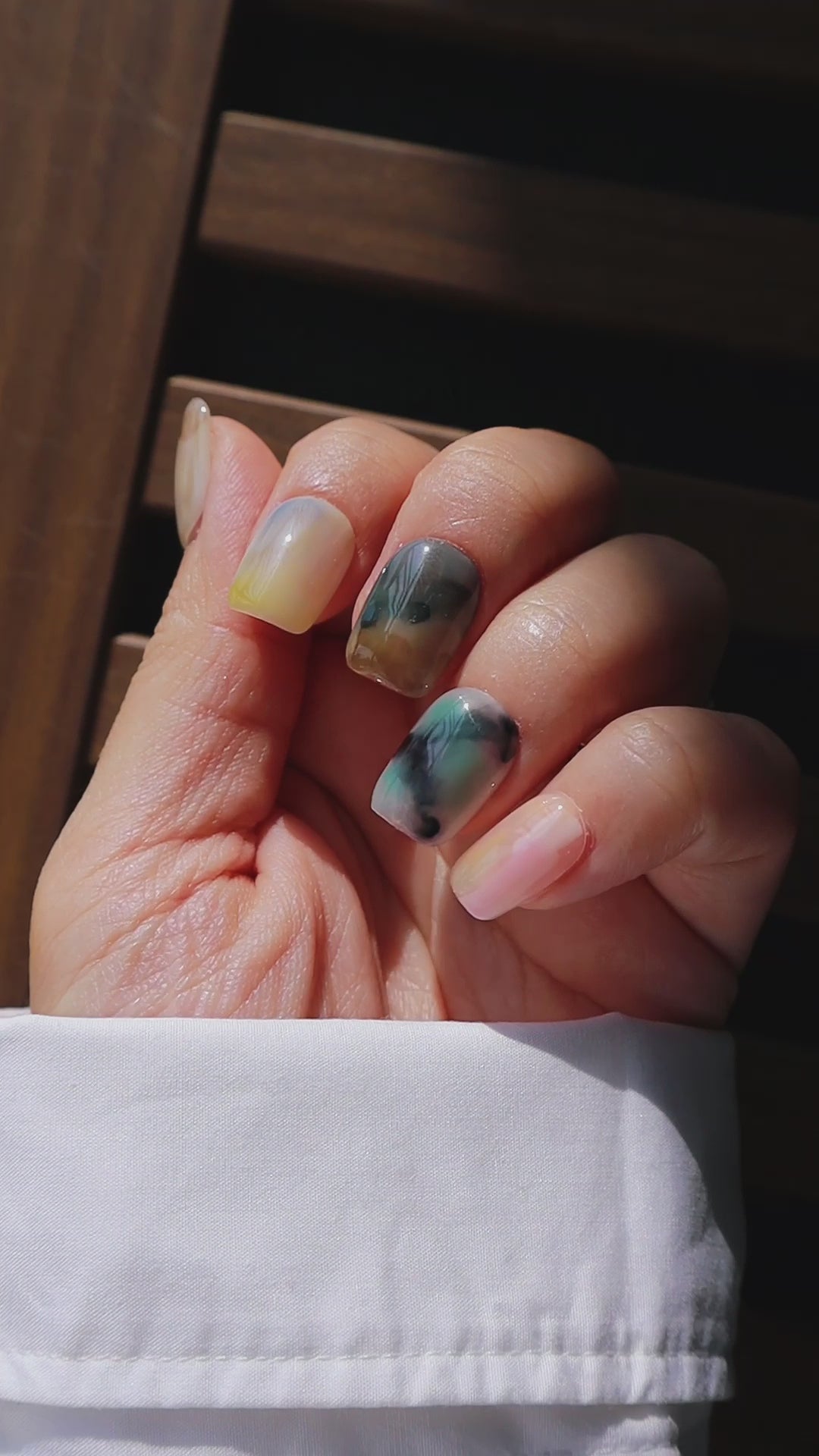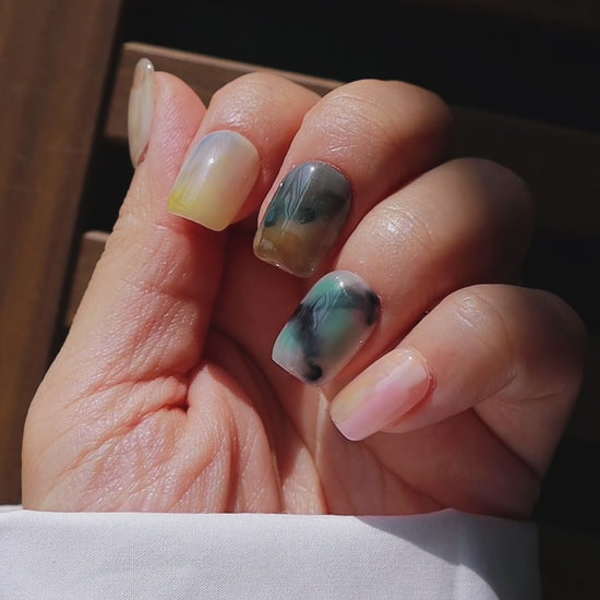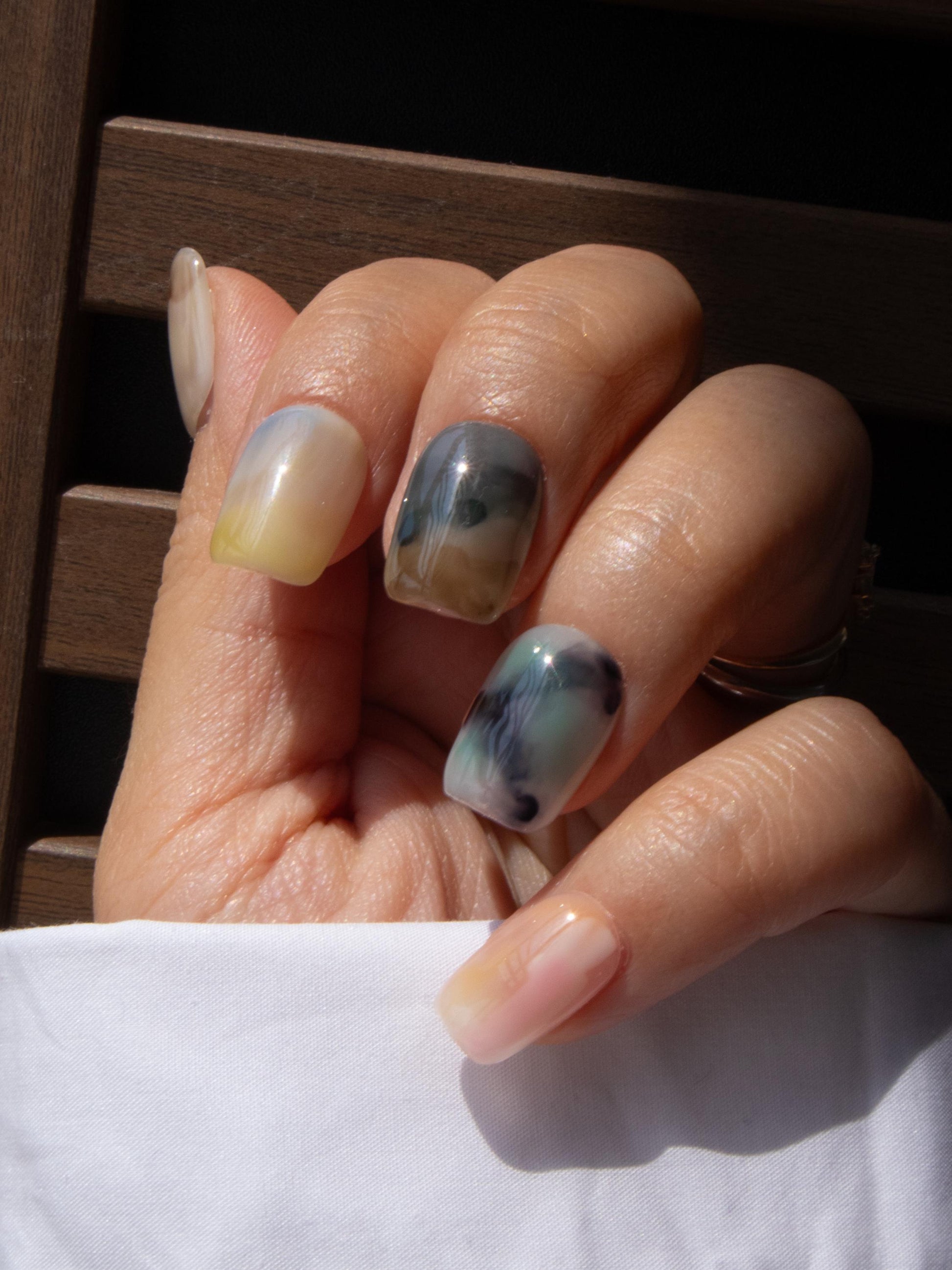 Serenity awaits with this Zen Flow press on nail set. Pastel and earthy tones swirl in a watercolor dance. Made with premium gel, they’re durable, reusable, and designed to feel like custom luxury nails without the salon visit.